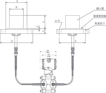 AK-3051DP双法兰液位变送器是一种通过安装在管道或容器上的远传装置来感受被测压力,该压力经毛细管内的灌充硅油(或其它的液体)传递至变送器的主体,然后由变送器主体内的δ室和放大线路板,将压力或差压转换4~20mA.DC信号输出(参见结构原理图)。 |